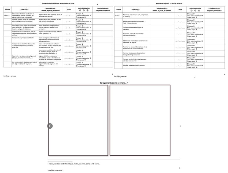 La construction d’un portfolio numérique est devenue obligatoire dans le cadre de la formation et sert à « évaluer les acquis du stagiaire de manière continue, et à l’issue de chaque thématique de formation, à partir [des différents] outils d’évaluation, d’autoévaluation et des mises en situation[18]». Le livret de compétences est mis à disposition de l’apprenant dès le début du parcours de formation et complété en ligne avec l’aide du formateur tout au long du parcours d’apprentissage linguistique, pour être rendu accessible au stagiaire à la fin de sa formation. Chacun apprend donc à le compléter, à mesure de sa maitrise du code et de l’outil informatique. Le portfolio est d’une importance capitale pour la conscientisation des apprentissages, telles que nous l’avons déjà évoquée, et, dans cette optique, le fait de le rendre obligatoire dans la formation nous semble pertinent. En effet, ceci permet d’apprendre à exprimer ses compétences et de se situer dans son apprentissage, dans une approche réflexive de la formation par et pour l’apprenant, tout en l’initiant progressivement au numérique.