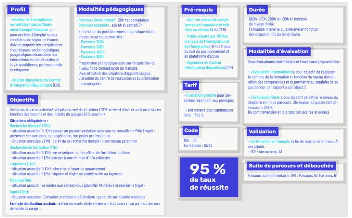 Fiche descriptive de la formation linguistique OFII, apprentissage du français.