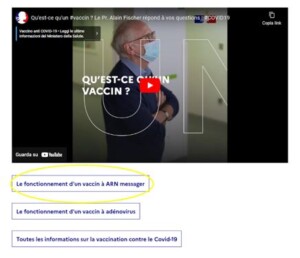 Cependant, de la place est assurée aussi à d’autres experts nationaux quand il s’agit d’expliquer au grand public des informations scientifiques, comme c’est le cas, par exemple, de la vidéo du Professeur d’immunologie, Alain Fischer, qui introduit la question de l’importance des vaccins.