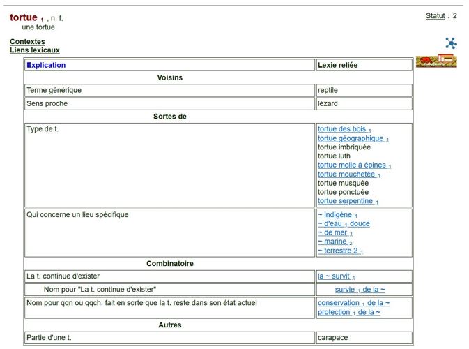 Figure 3 – Liens lexicaux répertoriés pour tortue dans le DiCoEnviro (2023).